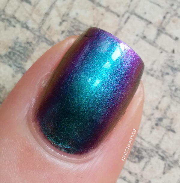 What I like the best about this polish is that you can see a tiny purple sparkles on green and blue, it looks amazing. Let's see the close-ups: